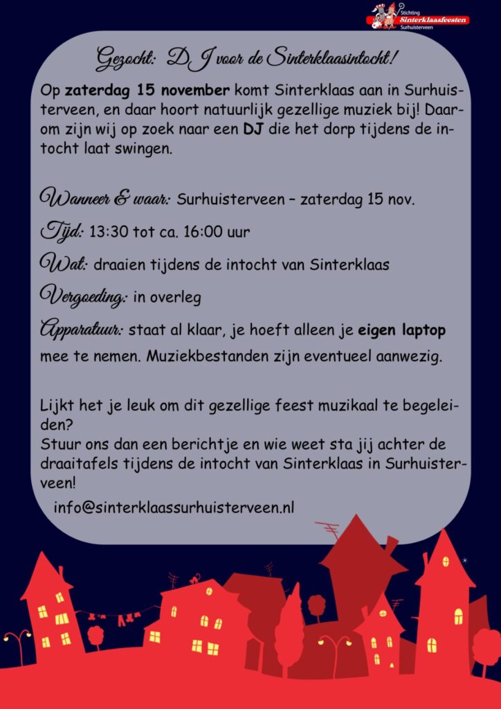 Lijkt het jou leuk om naast Sinterklaas in de spotlight te staan!?Iedereen op jouw muziek laten dansen!?Lees dan snel de oproep en wie weet maak