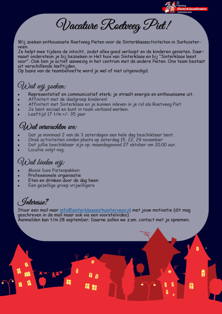 Onze Pietenfamilie is al jaren om op te bouwen,Ja, we werken met elkaar vol vertrouwen.De afgelopen jaren weten steeds meer mensen Surhuisterveen te vinden tijdens