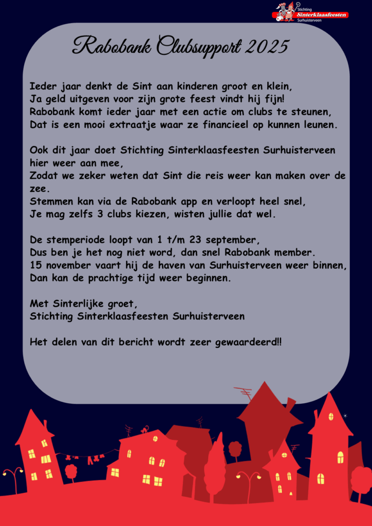 Ook dit jaar doet Stichting Sinterklaasfeesten Surhuisterveen hier weer aan mee,
